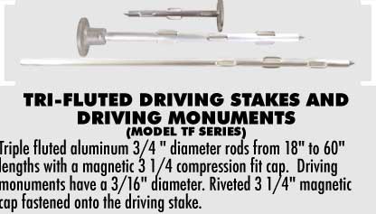 Tri-fluted driving stakes and Driving monuments (model TF series)